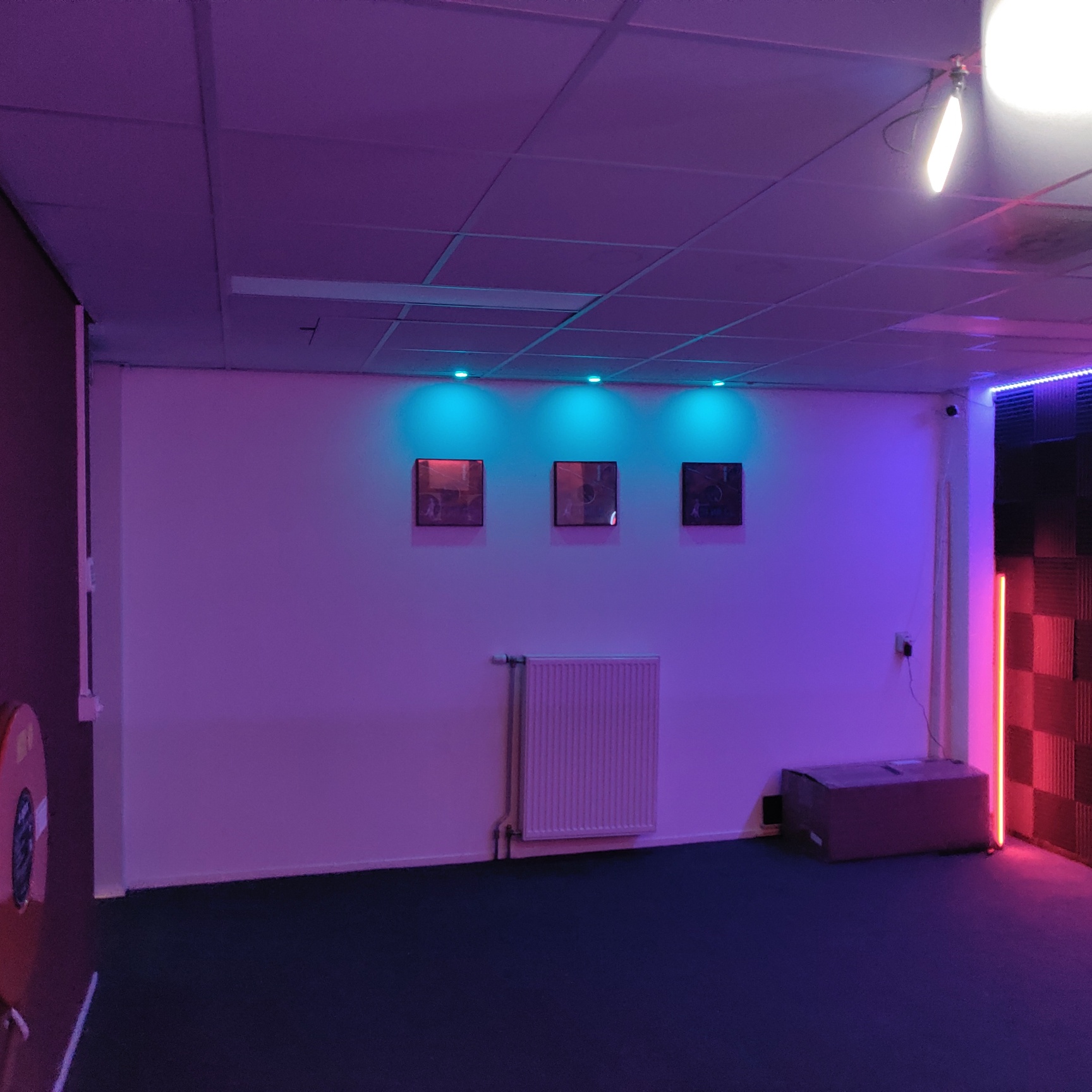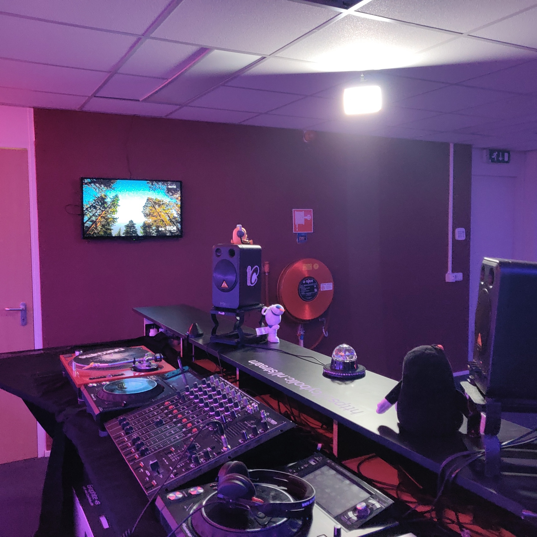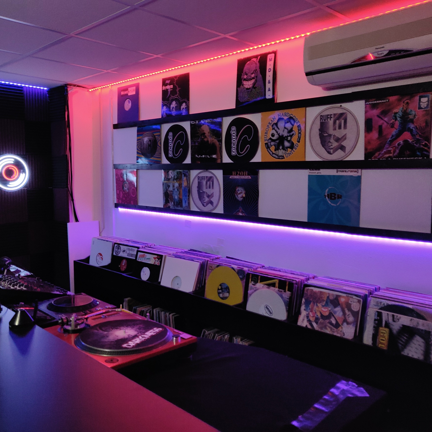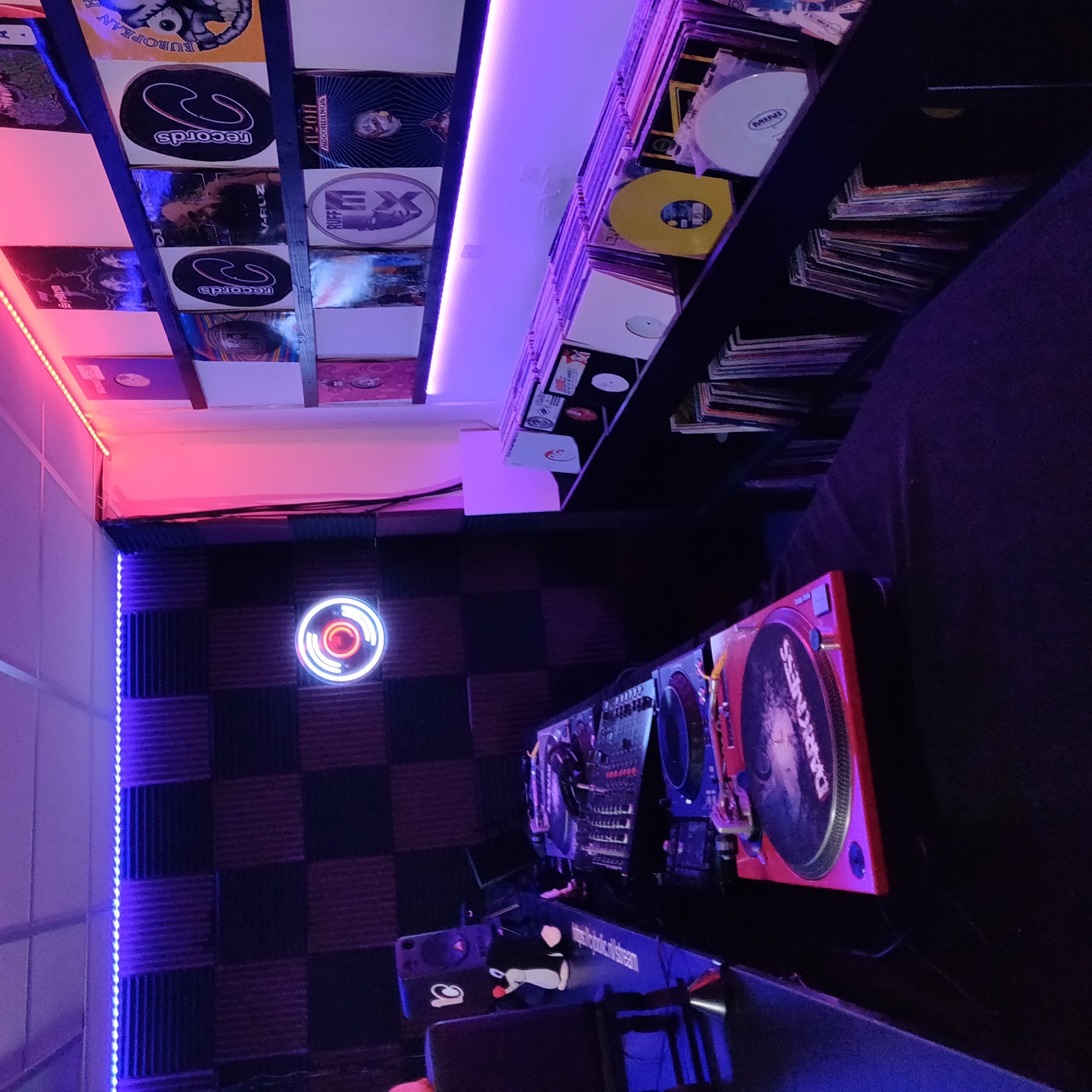 Our studio is a 24m2 (260sqft) windowless room which is fully dedicated to dj'ing, streaming and producing music. It consists
