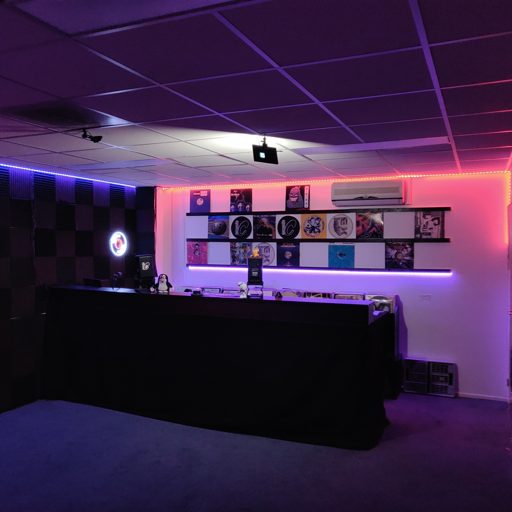 of an acoustic wall, 3mtr DJ booth, and will hold room for furniture and a DJ producer table.